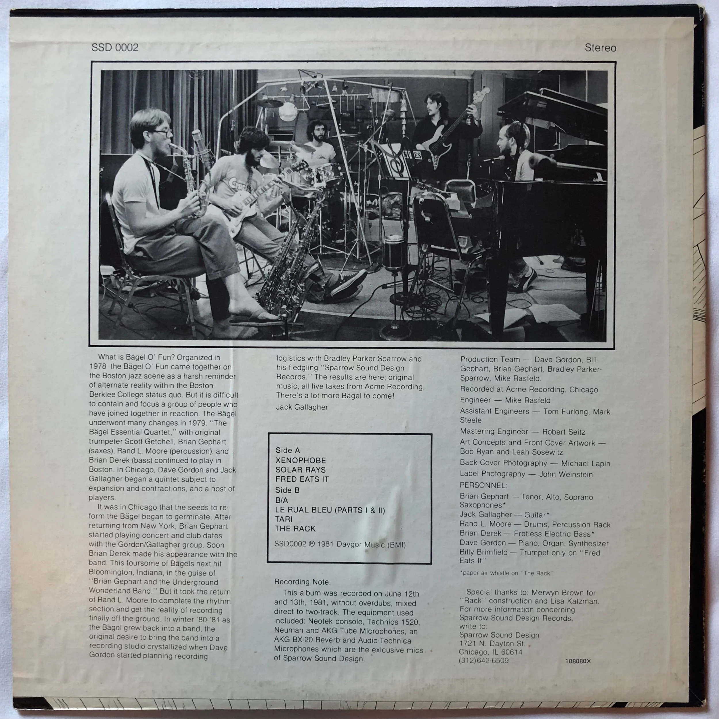 1981 Bägel O’ Fun “In The Underground Wonderland” LP/ Original Private Press Sparrow Sound Design/ Experimental Jazz, Jazz Funk, Contemporary