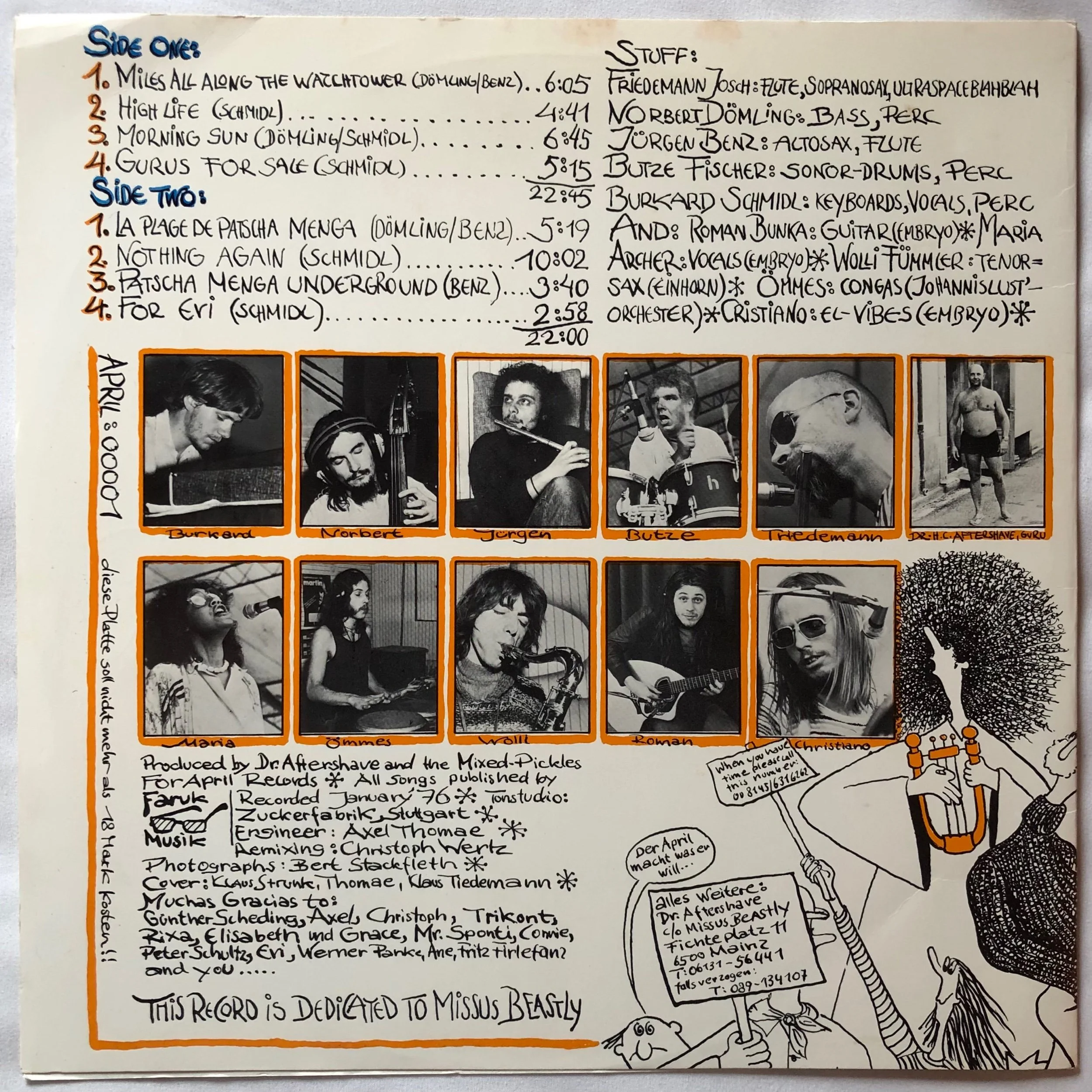 1976 Dr.Aftershave And The Mixed Pickles “For Missus Beastly” LP/ April Records Germany Original/ Jazz Funk, Prog Fusion